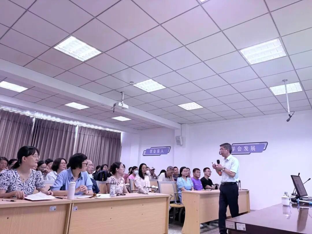 讲座全程,李勇忠教授凭借深厚的学术积淀,将语言哲学思辨、外语教育理论与生动实践案例有机融合。其风趣幽默的讲授风格,让抽象的学术内容变得鲜活易懂,引发在场教师对专业教学与研究的深度思考。互动环节中,教师们踊跃提问,围绕“外语课程人文素养融入路径”“互文性教学实践难点突破”等议题热烈交流,思维的碰撞让现场气氛持续升温,掌声不断。