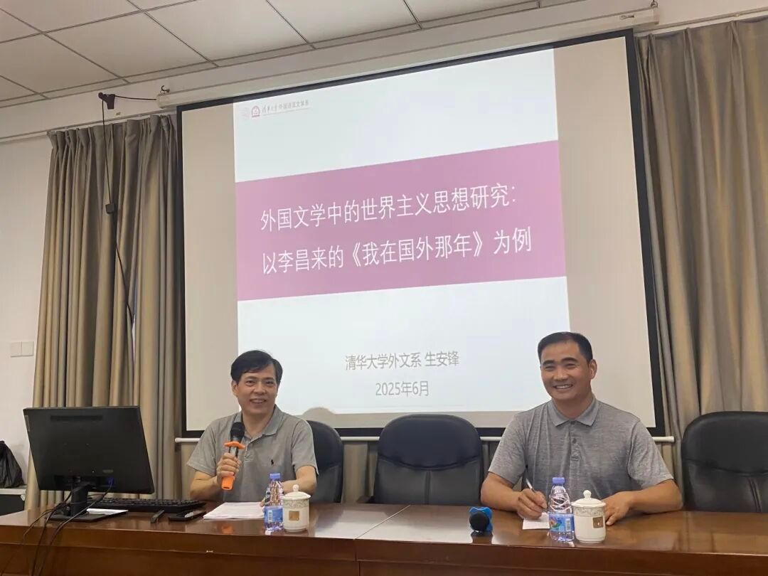6月20日,清华大学外国语言文学系长聘教授,博士生导师,博士后合作导师生安锋教授受邀为我院教师做了题为“韩裔美国作家李昌来的世界主义理念与写作实践”的讲座。讲座在综合楼中区504举办,由外国语学院副院长王羽青主持,外国语学院师生参加了本次讲座。