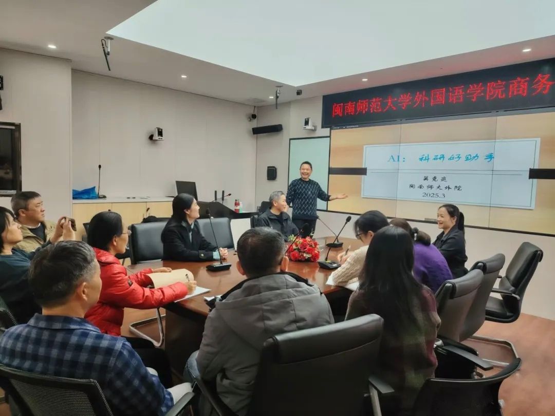 在人工智能技术迅猛发展的背景下,外语学科既面临新的挑战,也迎来前所未有的发展机遇。3月20日下午,闽南师范大学外国语学院举办AI赋能科研专题研讨会。学院各系部、2024级硕士研究生分别开展专题研讨。