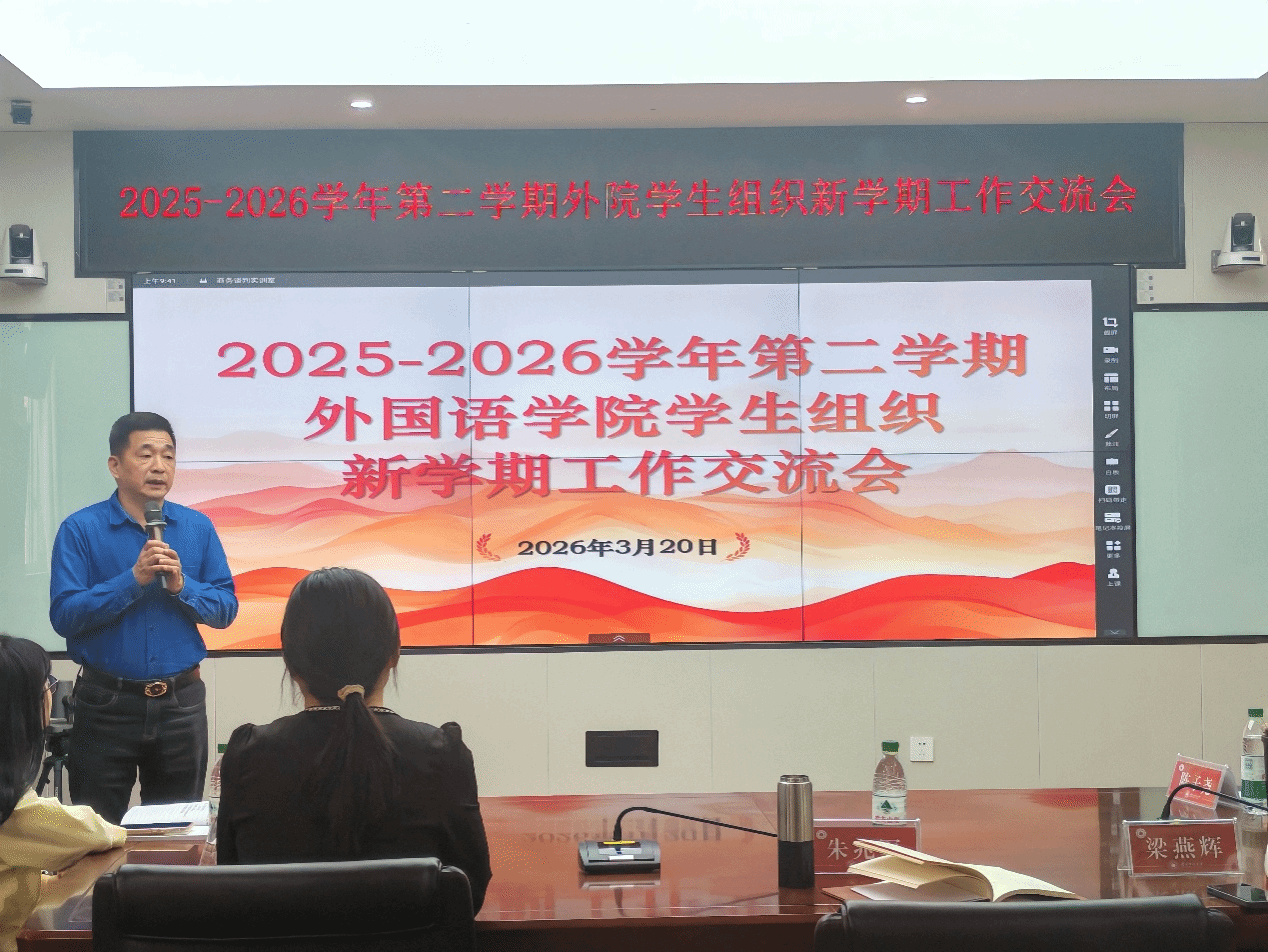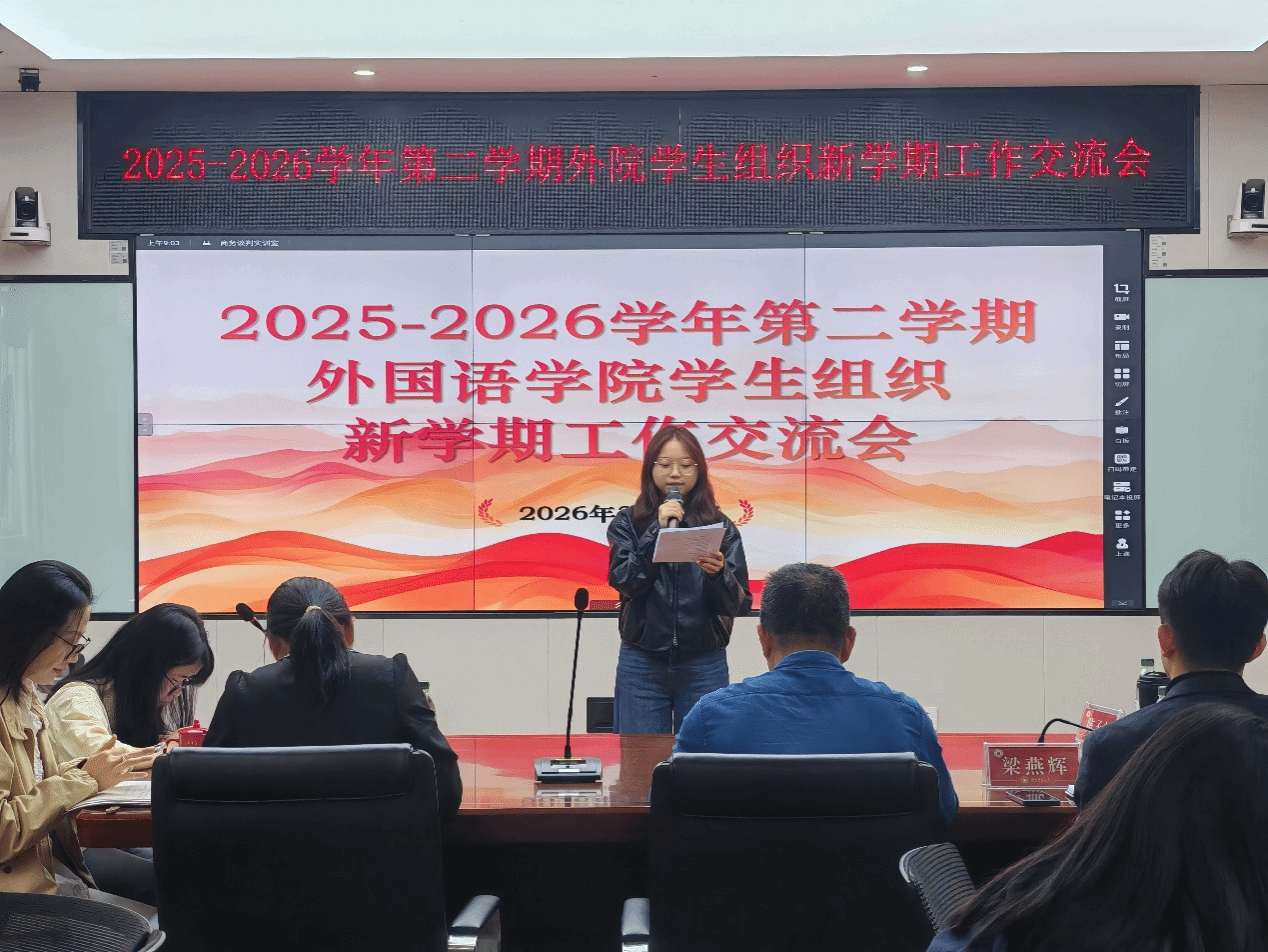 本次工作交流会为新学期各项学生工作指明了方向,明确了路径。各学生组织将牢记嘱托,认真落实会议要求,切实发挥桥梁纽带作用,以更饱满的热情、更创新的思维、更务实的作风,凝心聚力,共同为外国语学院的发展贡献力量。