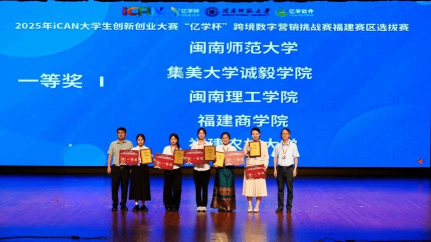 9月26日至27日,2025年iCAN大学生创新创业大赛“亿学杯”数字营销挑战赛福建赛区选拔赛在闽南师范大学成功举行。本次赛事由福建省教育厅主办、闽南师范大学承办。省内25所高校30支代表队齐聚一堂,共同交流复合型跨境数字营销人才的培养路径。