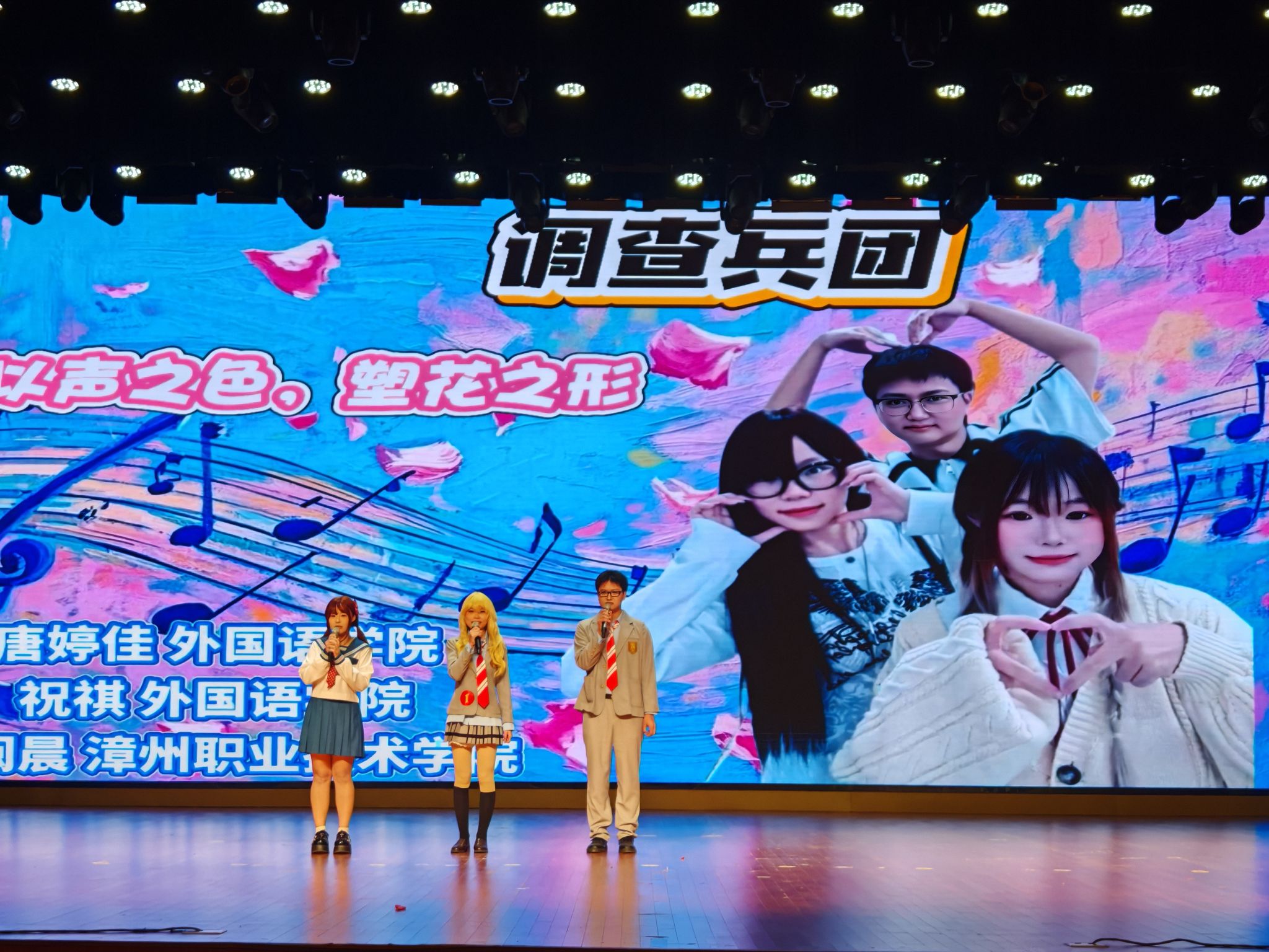 本次活动经过海选、复赛、决赛。在决赛中,来自漳州职业技术学院、漳州卫生职业学院、闽南师范大学各学院学子及留学生代表组成的11支队伍进行同场竞技,通过复刻经典影视桥段还原角色神韵;更融入本土文化思考,用外语演绎传递中国故事,让现场观众沉浸式感受跨文化交流的魅力。最后由来自闽南师范大学的“闪电天马队”和“shining sparkle”获得日语组和英语组的冠军。